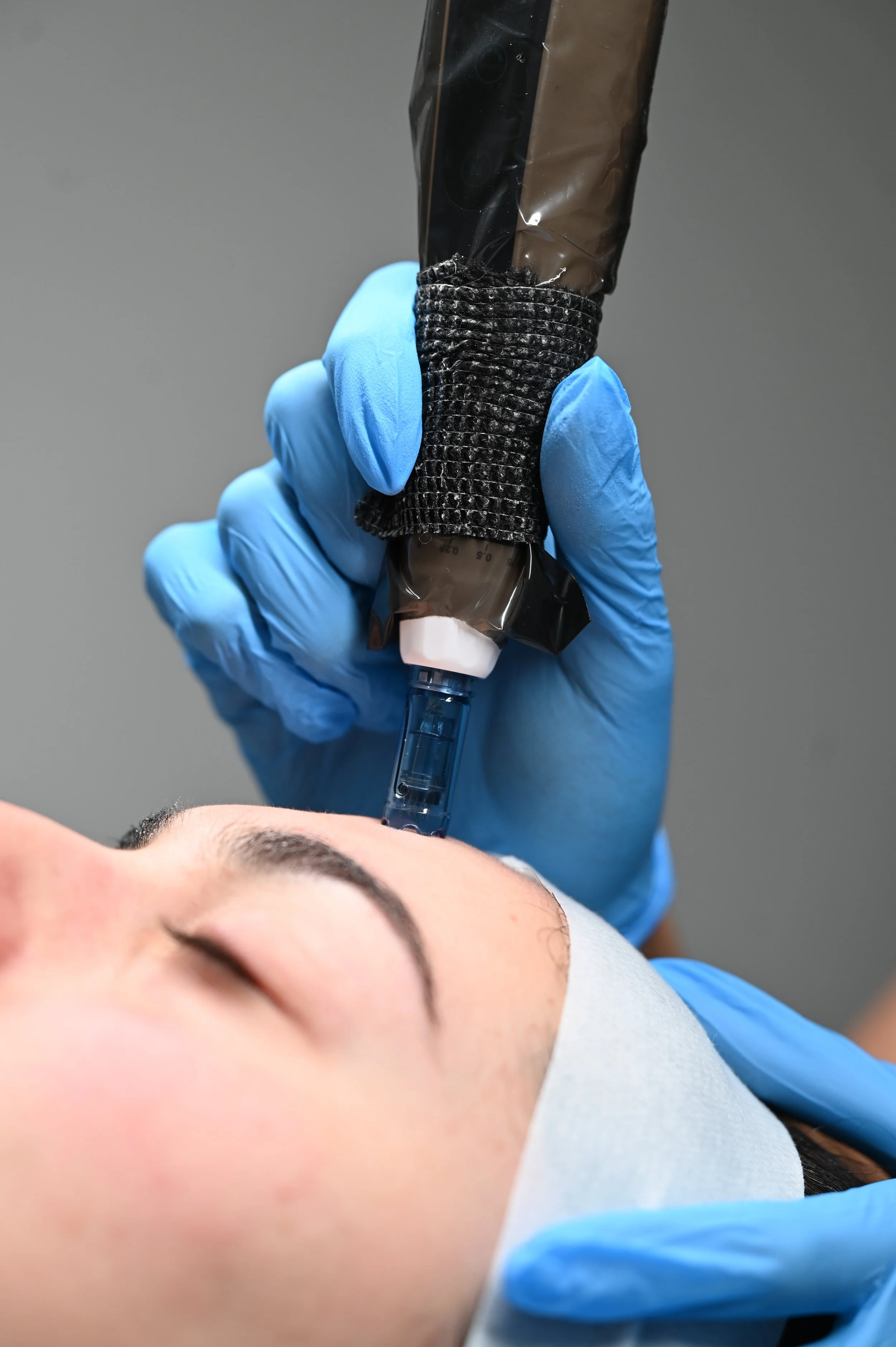 Mini consult, Double cleanse, Skin prep (Numbing optional), Skin needling, LED or Mask, Post care